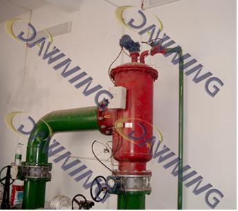 現(xiàn)場安裝圖,圖中立式自清洗過濾器室內安裝,下進側出,右邊小管道與排污口連接方便導出排出的雜質。