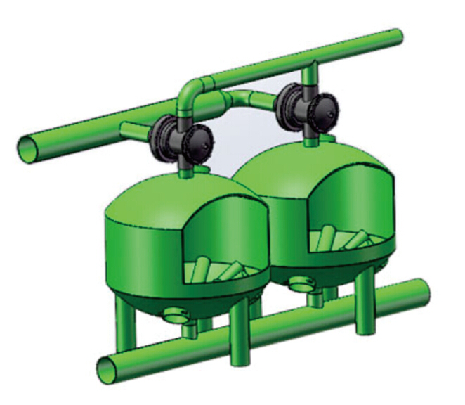 當(dāng)系統(tǒng)處于過濾狀態(tài)時(shí),加壓水從濾罐進(jìn)口流入布水系統(tǒng),均勻的到達(dá)濾料層。當(dāng)水流過濾料層時(shí),懸浮物被濾料截留。過濾器底部有帶縫隙的集水器,過濾后的干凈水被均勻收集,并流出過濾器。
