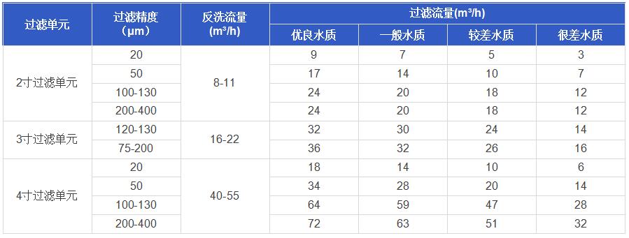 不同的來水水質(zhì)對過濾器的運行周期影響很大,通常選擇系統(tǒng)時應保證系統(tǒng)反洗間隔不小于1小時。